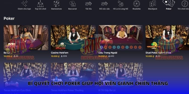 Poker mang đến sức hút mãnh liệt nhờ sự kết hợp giữa kỹ năng tính toán và khả năng đọc tâm lý đối phương trong từng lượt tố. RIKVIP xây dựng sảnh cược chuyên nghiệp giúp anh em tiếp cận những ván bài kịch tính với độ bảo mật và tính minh bạch tuyệt đối. Việc nắm vững quy tắc kết hợp các lá bài tạo thành bộ mạnh nhất đóng vai trò then chốt cho mọi thành công.